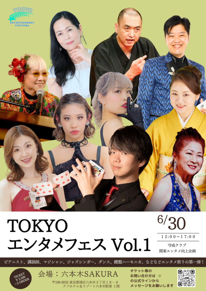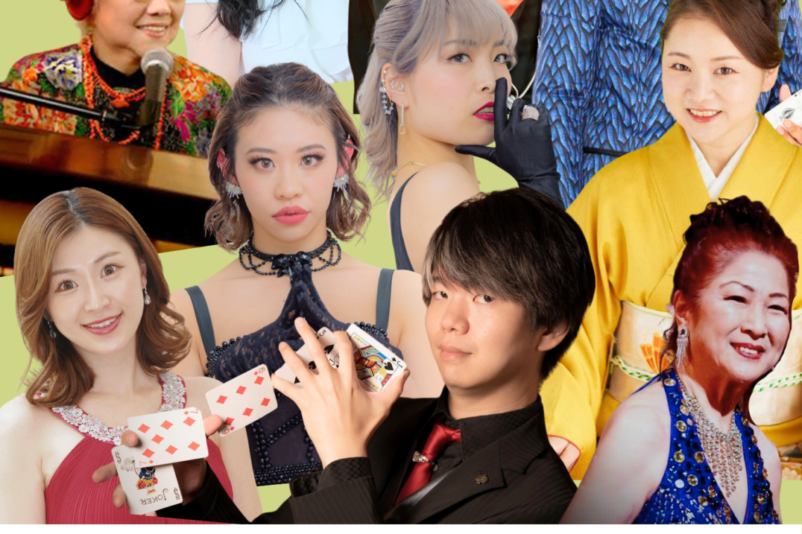 ピアニスト、ジャズシンガー、マジシャン、講談師、ダンサー、鍵盤ピアニスト、落語等、様々な守成クラブ(https://www.sho-ko.co.jp/)のプロのエンタメの方々が出演します。
